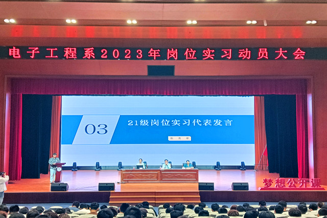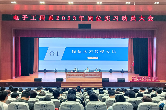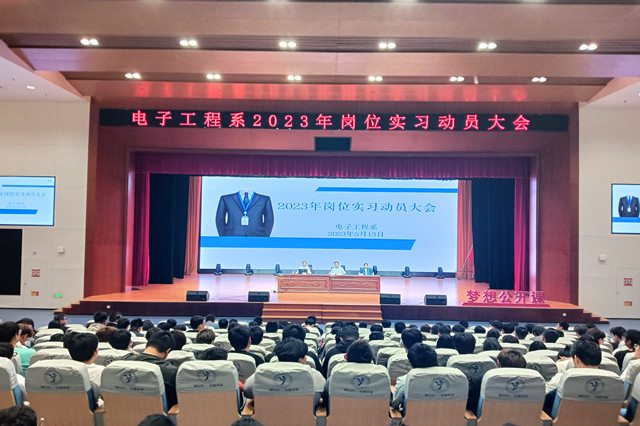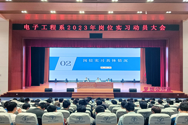为促进2021级学生岗位实习工作的顺利开展,强化实习管理,让学生进一步明确岗位实习的意义,引导学生做好岗位实习的心理准备,确保实习质量,5月13日上午,电子工程系在学校报告厅召开了2021级学生岗位实习动员大会。电子工程系主任姚小冬、电子工程系党支部副书记唐钰峤、电子工程系副主任丁向琴、专业负责人、2021级各班辅导员及2021级全体学生参加了本次大会。会议由电子工程系党支部副书记唐钰峤主持。