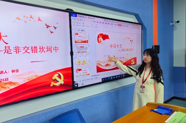 为推动党史学习教育常态化长效化,扎实抓好学习贯彻习近平新时代中国特色社会主义思想主题教育,2023年10月10日下午,电子工程系党支部开展党史专题学习,电子工程系主任姚小冬及全体党员教师参加了此次学习,此次学习由林雪老师主讲,带领全体成员共同回顾了中共十大的会议历程。
