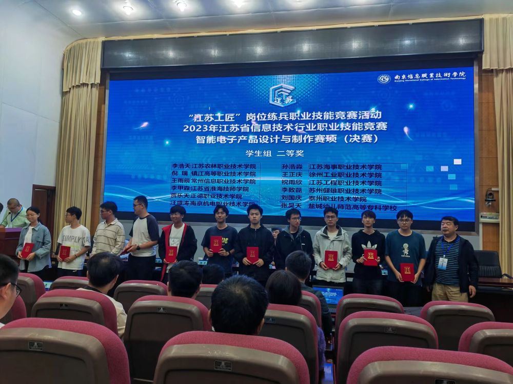 江苏工匠岗位练兵职业技能竞赛——2023年江苏省智能电子产品设计与制作职业技能竞赛在经过各地市选拔后,于11月3日-4日在南京信息职业技术学院举行了省级比赛,来自全省13个地市的院校共60名师生参加了比赛,经过激烈角逐,电子工程系张志鹏老师荣获教师组二等奖,电子信息工程技术专业的汪盛涛同学荣获学生组二等奖。