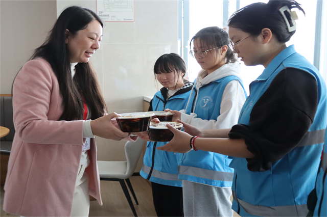 活动最后,电子工程系党支部副书记陈雪为系里资助的同学们分发劳动成果。传统的制作方法,让支部的老师和同学们回忆起老家的味道,小时候或多或少看着妈妈或姥姥腌菜,咸菜缸里装满了味蕾的记忆。经过时间历练的腌菜,在寒冬里依然给我们带来与众不同的鲜。那不仅是味蕾的惦念,也是情怀所致。愈平凡,愈长久。或许,这也是平凡如腌菜的另一种长久。