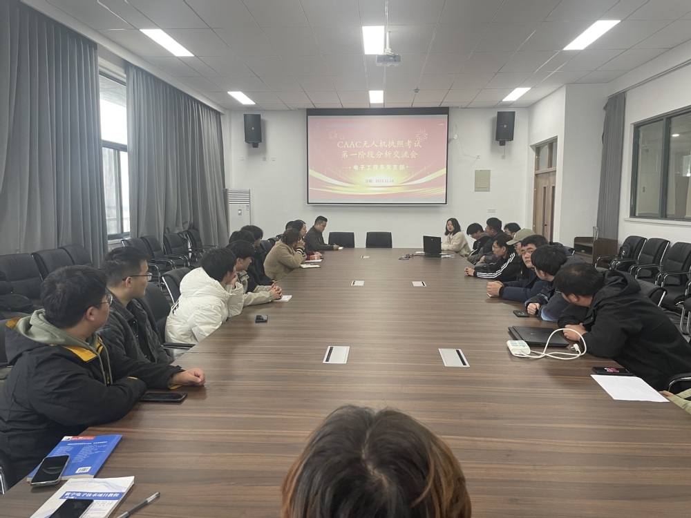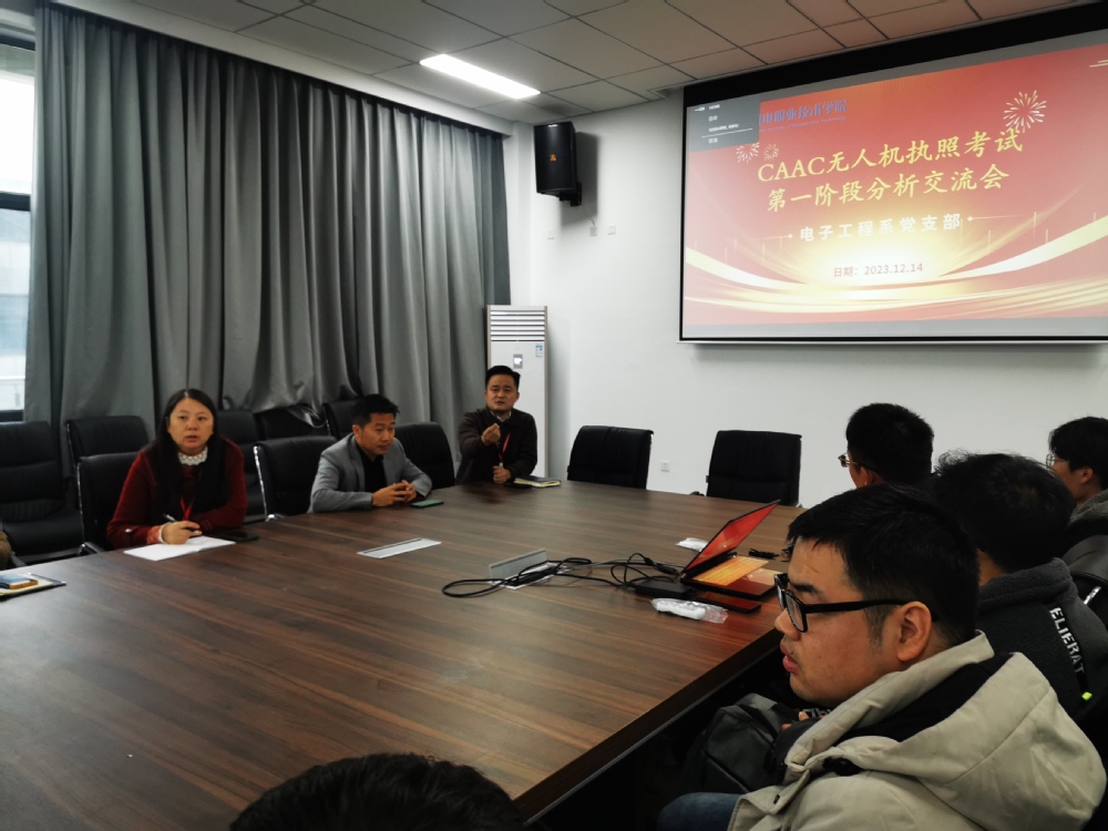 为提高CACC无人机执照考试通过率,提升无人机专业人才培养质量,关心无人机专业学生备考训练情况,电子工程系党支部于2023年11月14日在慎行楼3楼大会议室召开CACC无人机执照考试第一阶段分析交流会,系部主任姚小冬、党支部副书记陈雪、辅导员贺婷、无人机专业教师宋中园、教务干事潘小红和企业相关人员,全体CACC考证同学参会,本次会议由电子工程系副主任丁向琴主持。