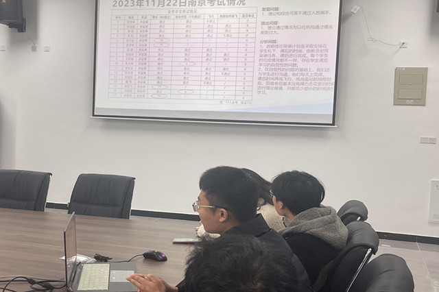首先,由企业飞行教练陈可做第一阶段考试情况总结汇报,陈可教练根据考试情况,用祥实、严谨的数据表明学生考试存在的问题,即“前端”—理论考试和“后端”地面站通过率较低,而中间飞行模块通过率较高。陈可教练认为,这是由于部分学生出勤率过低训练时间严重不足,学生自我管理松懈,态度上不够认真,并由此提出整改办法,对症下药,即提高学生思想认识,保证训练时长。