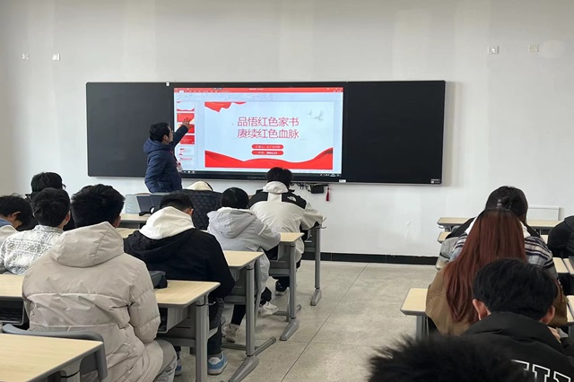 红色家书作为中国革命斗争中的重要文献形式,承载着革命先烈的智慧和情感,是红色精神的重要文化遗产之一。2024年3月8日10点30分,系辅导员、就业干事申辉在校博学楼103开展了以“品悟红色家书 赓续红色血脉”为主题的素养公开课,物联网232班所有同学参加。