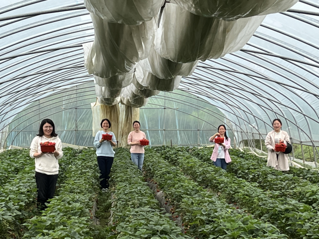 为贯彻落实乡村振兴发展战略,扶持高淳本土农产品,丰富教职工文体活动,增强教职工队伍的凝聚力。校工会开展“感受田园美景,共度‘莓’好时光”采摘草莓活动,电子工程系分工会积极响应工会活动,于2024年4月16日下午全体工会会员乘车来到高淳区国际慢城雪凤草莓园采摘草莓。