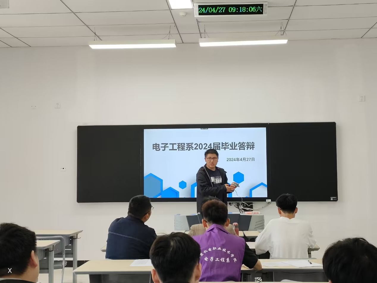 2024年4月27日电子工程系2024届毕业生毕业设计答辩在思学楼一楼各教室开展。在系部领导的精心组织,全系教师的共同配合下,完成此次答辩工作。此次答辩共分为十一个组,共有400名左右学生参与答辩,专业教师和企业工程技术人员担任答辩评委,共同为学生的毕业设计提供了专业的点评和指导。
