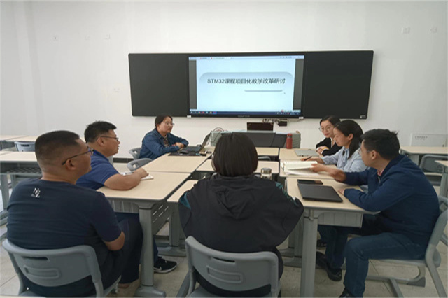本次教研活动由教研室教师刘庆华主持,她从事多年的STM32的教学工作,并且有企业的嵌入式项目开发经验,围绕教学目标、教学方案改革、教学内容改革和教学评价改革四个方面和老师们进行了研讨。会议中,教师张志鹏以自己从事多年的嵌入式教学和带学生参加电子竞赛的经验,提出如何优化实验设备、完善实验环境、提升教学质量等方面提出了建设性的意见和建议。大家一致认为,应加大对实验设备和环境的投入力度,为学生提供更加先进、完善的实践平台。同时,还应加强师资力量的培训与提升,确保教师备项目化教学的专业素养和实践能力。