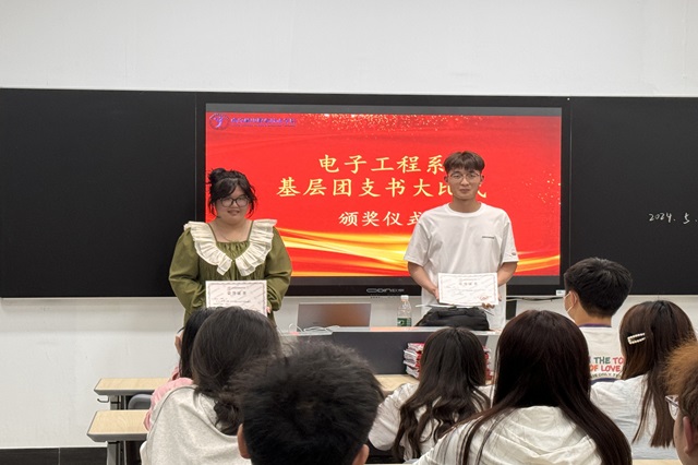 接下来,他介绍了团支书初赛大比武的获奖情况。参加本次技能大比武的唐乐怡和柏晋峰同学,用出色的表现为自己的梦想插上了翅膀,成为了团支书初赛大比武的一等奖得主。这份荣耀,既是对他们过去努力的肯定,也是对他们未来梦想的鼓舞。