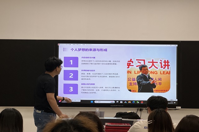 在“坚持梦想:挑战与克服”这一环节,赵梦楠通过列举成功人士的励志故事,强调了坚持梦想的重要性。他指出,梦想的道路充满挑战,但正是这些挑战使我们不断成长、不断强大。面对困难,同学们要保持坚定的信念,勇敢地迎接挑战,克服困难。此外,他还建议同学们要学会调整心态,把每一次的失败当作成功的垫脚石,从中汲取经验教训。