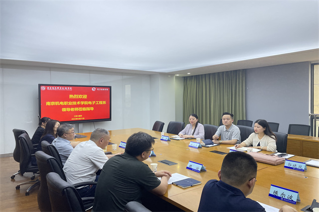 为促进高职院校之间资源共享、优势互补,推动电子信息工程技术专业高质量发展,2024年6月21日我校电子工程系赴南京信息职业技术学院电子信息学院,共同探讨专业建设的新道路,携手开创教育合作与发展的新篇章。南信息电子信息学院党总支书记陈永权,南信息电子信息学院院长马永兵,南信息电子信息学院副院长魏欣,南信息电子信息学院党总支副书记陈尔波,电子工程系主任姚小冬,党支部副书记陈雪,副主任丁向琴等出席会议。