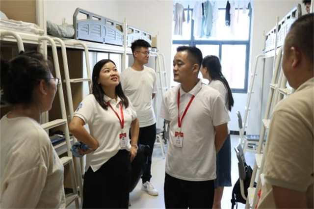 电子工程系系部主任姚小冬、党支部副书记陈雪、系教学主任丁向琴带领三位新生班辅导员深入宿舍,通过细致入微的检查为同学们的各项安全保驾护航。他们在与新生交流的过程中,反复强调安全的重要性,提醒同学们要增强安全意识,防范各类安全风险。同时也给新生们送去关怀和温暖,让他们在校园里也能感受到家的温暖。