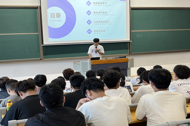 课程中,程明通过案例分析和互动环节,帮助学生们更好地了解专业所学的知识和技能,如何应用于实践,并鼓励学生积极探索创新。同时,老师们则着重讲解了专业学习的方法,强调了基础知识的重要性,以及如何利用学校和网络资源,信息化教学手段进行自我提升。