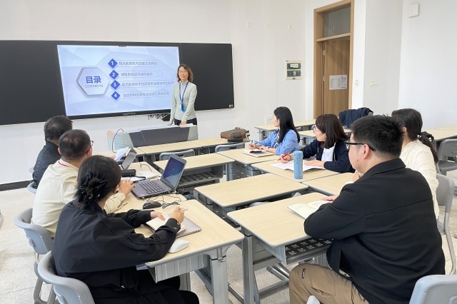 无人机应用技术专业教师郁镭首先从现代教育技术的定义与特点,课程思政的内涵与目标,现代教育技术在课程思政教学中的应用及面临挑战三个方面进行具体介绍;接着她结合新华网提供的全国高校课程思政教学资源服务平台中现代教育技术助力课程思政建设的案例进行学习;最后参与研讨的教师结合自己目前教授的课程谈了自己在教学过程用到的现代教育技术,课程内容教学中所传达的思政内容,探讨如何将两者结合的有效途径。