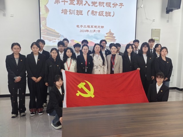 2024年11月5日,入党积极分子培训班(初级班)开班仪式在我校“一站式”社区慎行楼304举行。电子工程系党支部副书记陈雪、全体支委和系团委书记魏澜出席本次仪式。此次活动旨在提高入党积极分子的思想政治素质,为党组织培养更多优秀的后备力量。