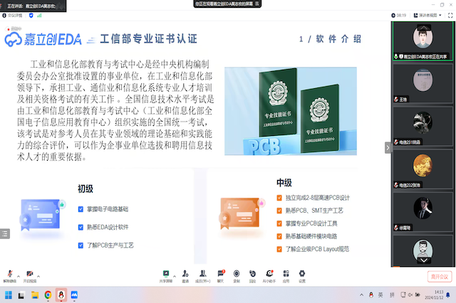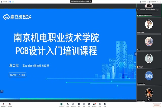 为了拓宽学生的电子设计视野,提升他们的创新能力和实践技能,2024年11月12日,电子工程系特别邀请了深圳嘉立创科技集团股份有限公司嘉立创EDA高校教育经理莫志宏,为2023级学生带来了一场主题为“电子设计创新之路”的培训讲座。同时,对即将举行的2024年校园技能竞赛——第一届“嘉立创杯”EDA设计与开发项目大赛,他还为学生们进行了详细的赛前指导,帮助他们更好地备战此次比赛。