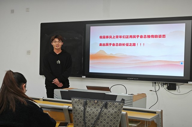 比赛现场,各参赛选手精神饱满、准备充分。他们紧扣时代脉搏,围绕党的理论、团的历史、青年责任等主题,通过精彩的讲解、生动的PPT 演示、富有创意的互动环节,将团课内容深入浅出地呈现给观众。有的选手以革命先辈的英勇事迹激励同学们传承红色基因,有的则结合当下热点话题,探讨青年在新时代的使命担当,引发了在场师生的强烈共鸣与深入思考。