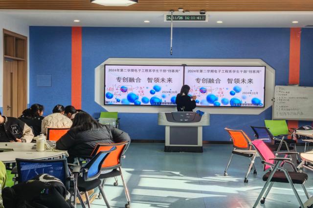 12月5日,电子工程系学生干部创客周末路演活动在一站式学生社区思学楼409顺利举行,活动现场,来自各班级的学生干部们变身“创意达人”,思维碰撞出激烈火花,为校园注入创新热潮。