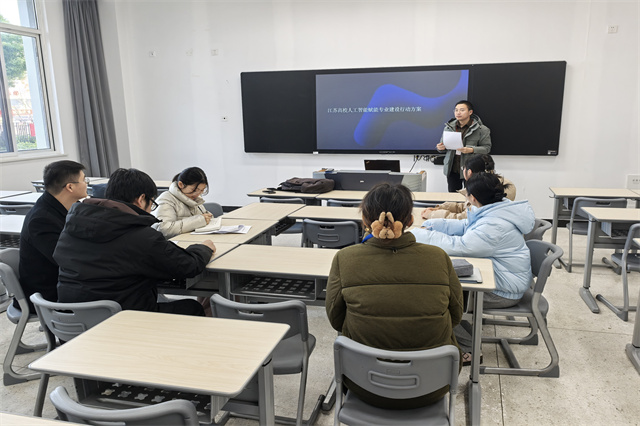 第一部分,全体教师一起学习了《江苏高校人工智能赋能专业建设行动方案》,方案明确了一系列重要举措,致力于打造一流“人工智能+”专业体系。一方面,将聚焦国家战略和区域发展需求,加强人工智能品牌专业和国家级一流高校专业建设,支持高校成立教学联盟,加大投入力度,打造专业集群。同时,鼓励高校增设人工智能领域特色专业,提升教师人工智能素养,推动人工智能与其他专业交叉融合,通过多种形式培养复合型人才。