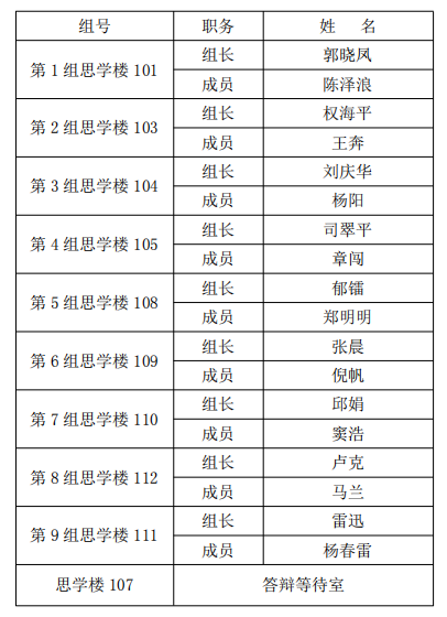 答辩小组安排如下: