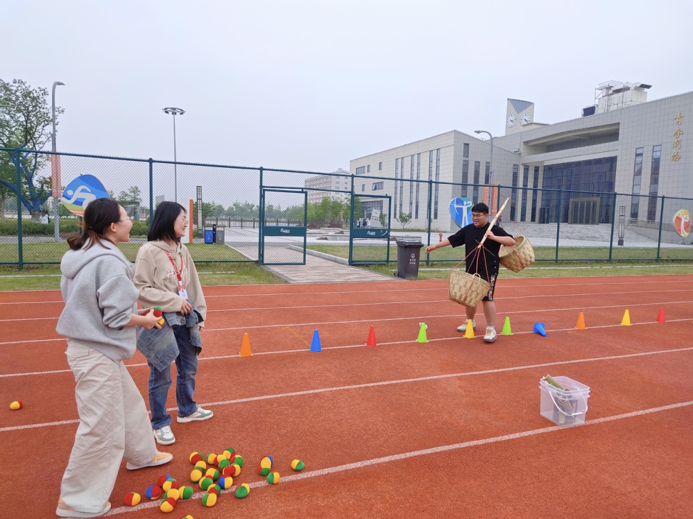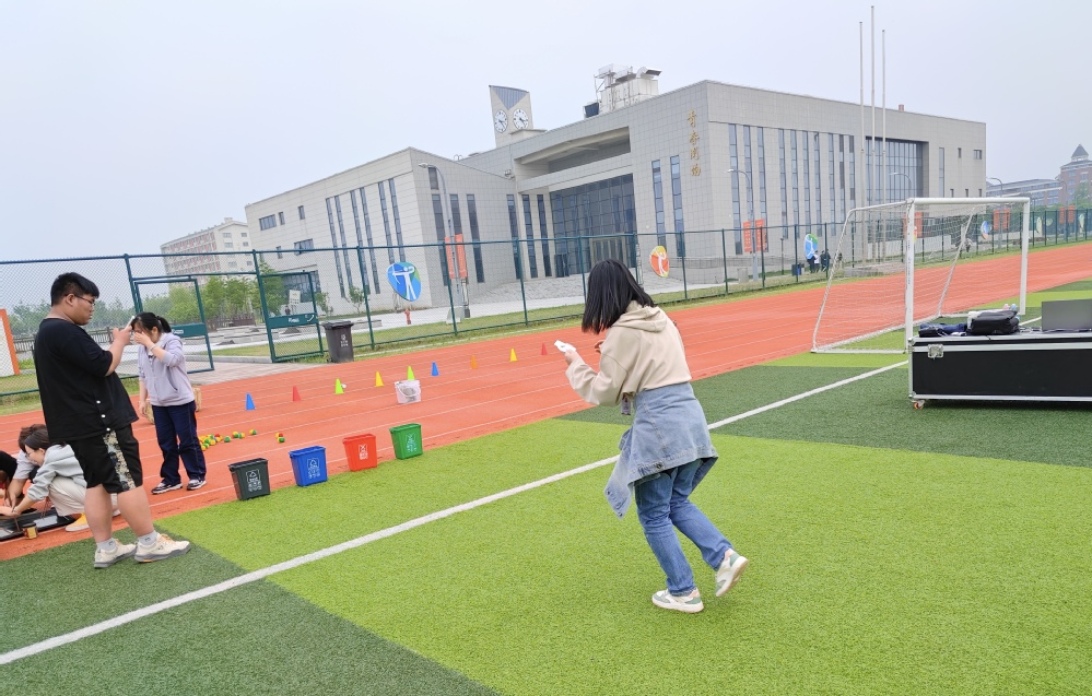 在“急速搬运工——农田物资接力赛”中,师生们肩挑扁担,跨越障碍物,接力运送“粮食”。这不仅仅是一场速度与力量的较量,更是对团队抗压协作能力的极致考验。在“精准投喂——果园采摘大作战”环节,充满了欢声笑语,师生们站在指定区域外,专注地将“水果”投向背篓,每一次成功的投递都伴随着阵阵掌声与欢呼。同时,环保热点也被巧妙融入到了“争分夺秒——垃圾分类赛”中,师生们快速抽取垃圾卡片、准确分类投放,每一次正确的选择都是对环保理念的践行,每一次迅速的决策都是对自我能力的挑战。