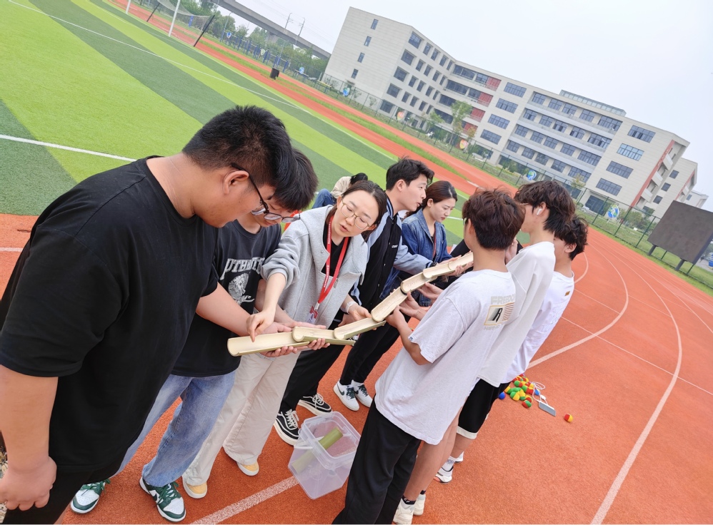 此外,在“火眼金睛——瑕疵品挑拣赛”中模拟了工厂质检劳动的场景,让我们在紧张刺激的游戏中锻炼了专注力与细致观察能力。而“一鼓作气——团队运水赛”则是最考验团队协作的项目,大家用竹筒拼接输水通道,齐心协力将水从起点引至终点,面对中途漏水等突发状况,师生们毫不气馁,相互鼓励,共同克服困难。这一刻,师生们不仅仅是师生,更是并肩作战的战友。
