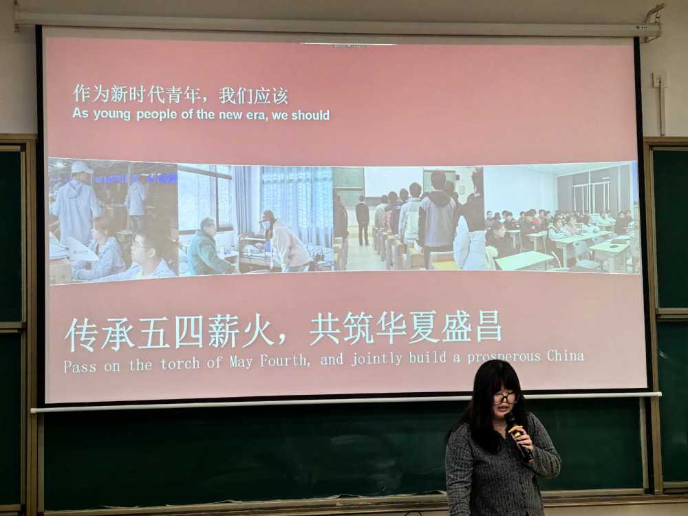 在主题团课分享环节,何智思同学围绕“五四精神:中国青年的责任与担当”展开分享,将革命先烈的精神品质与当代青年的使命相结合,号召同学们既要仰望星空,更要脚踏实地。唐乐怡同学则以“秉承民族使命,照破山河万里”为题,从五四运动中青年们为国家独立、民族解放而英勇奋斗,深情讲述了陈乔年等革命烈士的感人事迹,生动诠释了五四精神的时代价值。