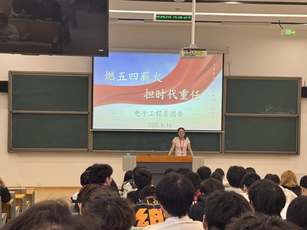 为弘扬五四精神,激励青年团员担当时代使命,5月16日中午,电子工程系在一站式学生社区勤学楼101组织大一全体团员开展五四青年节主题团日活动。活动通过丰富多彩的形式,带领同学们回顾历史、展望未来,深刻领悟五四精神内涵,激励青年学子勇担时代重任。