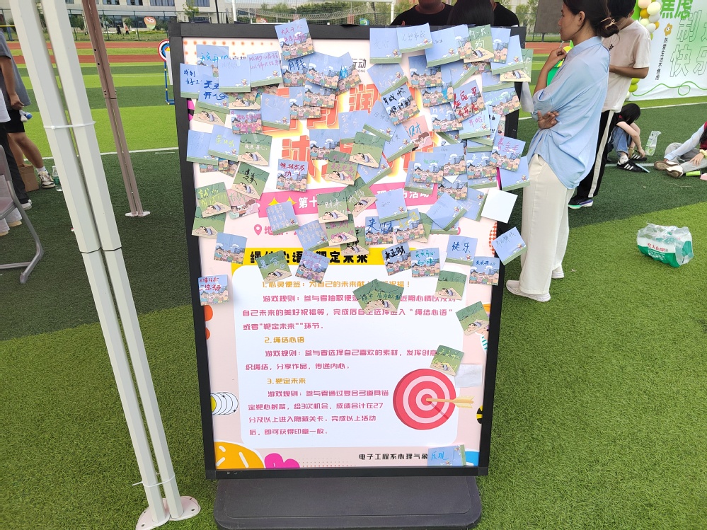 在5.25心理健康教育月的温暖氛围中,为全面贯彻落实《全面加强和改进新时代学生心理健康工作专项行动计划(2023—2025年)》等系列文件精神,扎实推进青少年生命健康“润心”行动,6月3日,电子工程系心理气象站与电子工程系关工委携手,在“一站式”学生社区田径场,精心策划并开展了“绳结心语,靶定未来”主题活动。活动吸引1000余名师生参加。