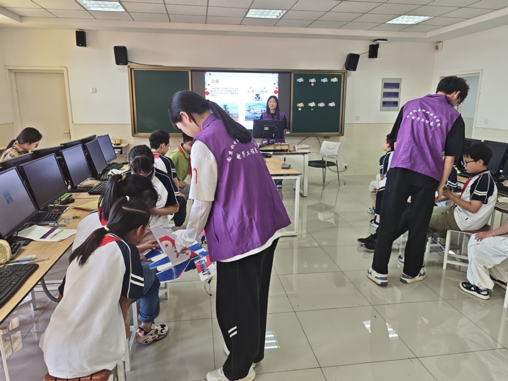 为践行志愿服务精神,普及科技知识,2025年6月5日,电子工程系团委联合自动化工程系团委,走进高淳区新城小学,开展了一场以“云端奇航,童梦飞扬”为主题的趣味科普活动暨素养公开课。通过生动的无人机知识科普与趣味试飞体验,为小学生们带来了一场别开生面的科技启蒙课。