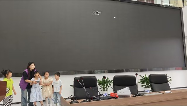 拓印活动结束后,志愿者们又给孩子们带来了神秘而新奇的无人机知识科普。通过生动形象的图片和视频,孩子们了解了无人机的构造、功能以及在各个领域的应用。当看到无人机在天空中灵活地飞行、悬停、翻转时,孩子们兴奋地欢呼起来,有的还忍不住跳起来,想要更近距离地观察这个神奇的“小家伙”。志愿者们还邀请了一些勇敢的孩子亲自操作遥控器,体验试飞无人机的乐趣,孩子们在实践中感受到了科技的魅力。