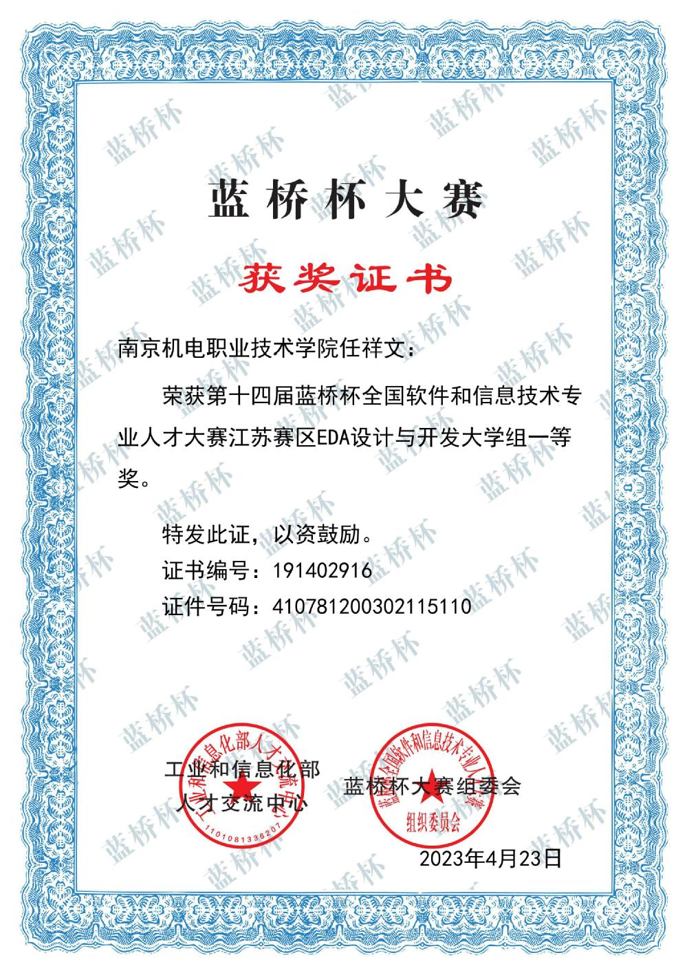 王红磊,男,2016届毕业生,在校曾任学院电子爱好者协会技术部长,先后获得江苏省高等职业院校技能大赛电子产品设计与制作项目一等奖、蓝桥杯江苏省赛区单片机设计与开发二等奖、院级焊接调试技能竞赛特等奖、宇视认证视频监控技术工程师,毕业后专转本考入南京晓庄学院电子工程学院继续深造,现任立讯精密工业股份有限公司研发工程师。