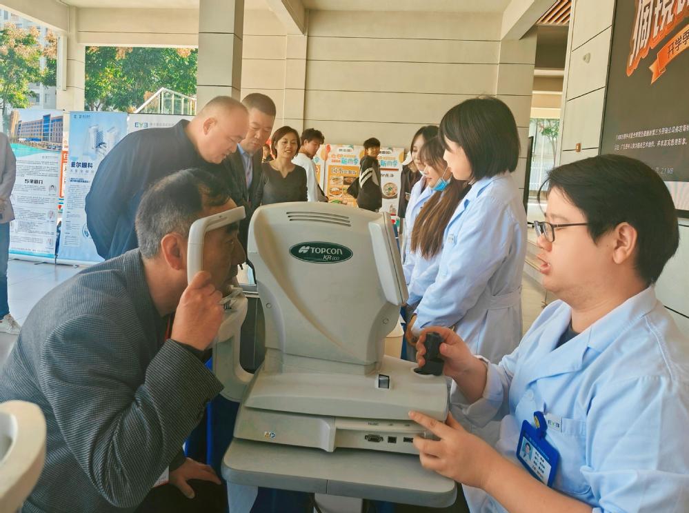 上午11点,南京爱尔古柏医院的专业医疗团队在食堂公共区域和宿舍公共区域设置好义诊区域。医生们耐心地为师生们进行视力检查、眼压测量等多项眼部检查,并针对不同情况给予专业建议和治疗方案。师生们无一不对这样贴心的义诊活动点赞,也对自己的眼睛健康有了更深入的认识。