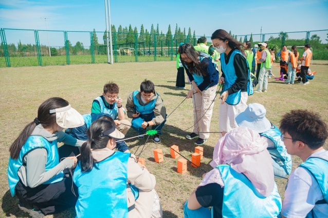 下午辅导员素质拓展培训活动围绕破冰融合和协同共进开展。破冰游戏“趣味接龙”迅速点燃现场氛围。两校辅导员通过随机分组完成互动任务,在欢声笑语中打破了初次见面的拘谨。团队组建环节将活动推向高潮——各组需在10分钟内确定队名、口号及队歌,并完成创意展示。嘹亮的口号与改编的队歌展现了辅导员们的激情与活力。在“草帽连连看”项目中,队员们需通过策略沟通与记忆配合,在规定时间内翻找匹配的草帽图案。各组不断优化分工方式,有的采用“分区记忆法”,有的实行“接力协作制”,充分体现了团队智慧。“步步高升”挑战则考验团队的耐心与执行力,队员们需合力操控绳索,将积木逐层垒高。过程中,大家从手忙脚乱到默契配合,不断刷新活动记录,引发阵阵欢呼。