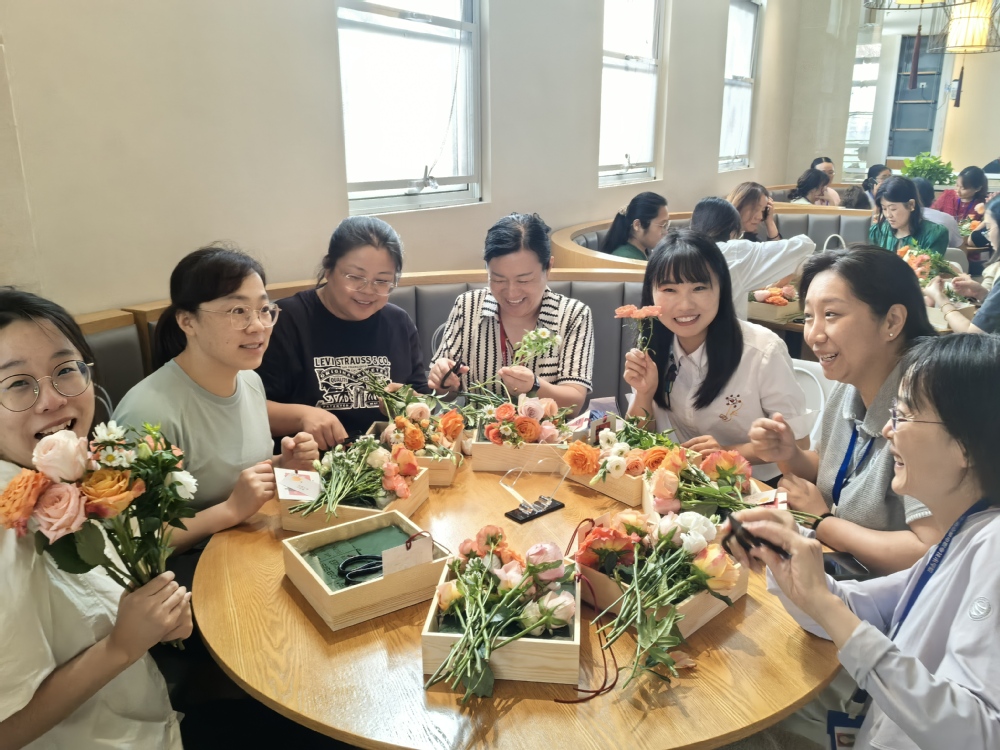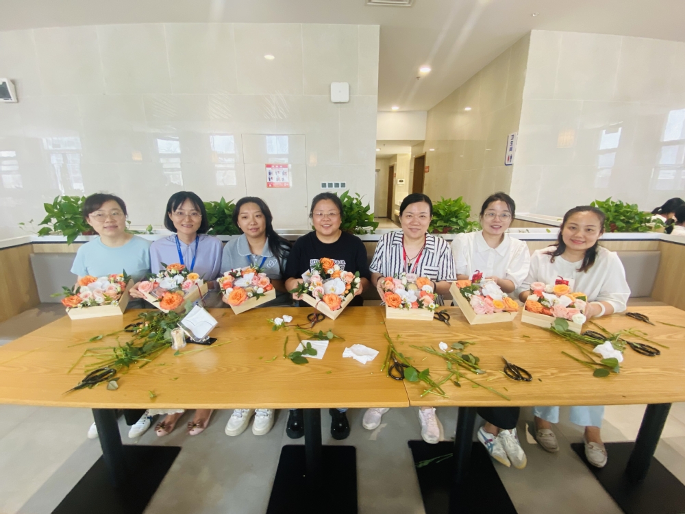 活动现场热闹非凡,欢声笑语不断。教职工们齐聚一堂,在花艺师和糕点师的指导下开始创作。桌上摆满了制作月饼的食材和鲜艳的花朵,散发着诱人的香气。大家一边认真地揉面团、包馅料,将对团圆的期盼融入每一个月饼之中;一边精心搭配鲜花,用花艺展现对美好生活的向往。