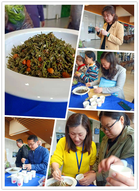 教工餐厅本地厨师还特地制作了一盘高淳时令特色凉菜——菱角须请教职工们免费品尝,先尝后买,并现场传授制作方法,为教职工在团购活动中增添了购买乐趣。