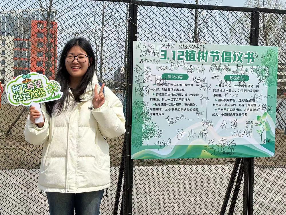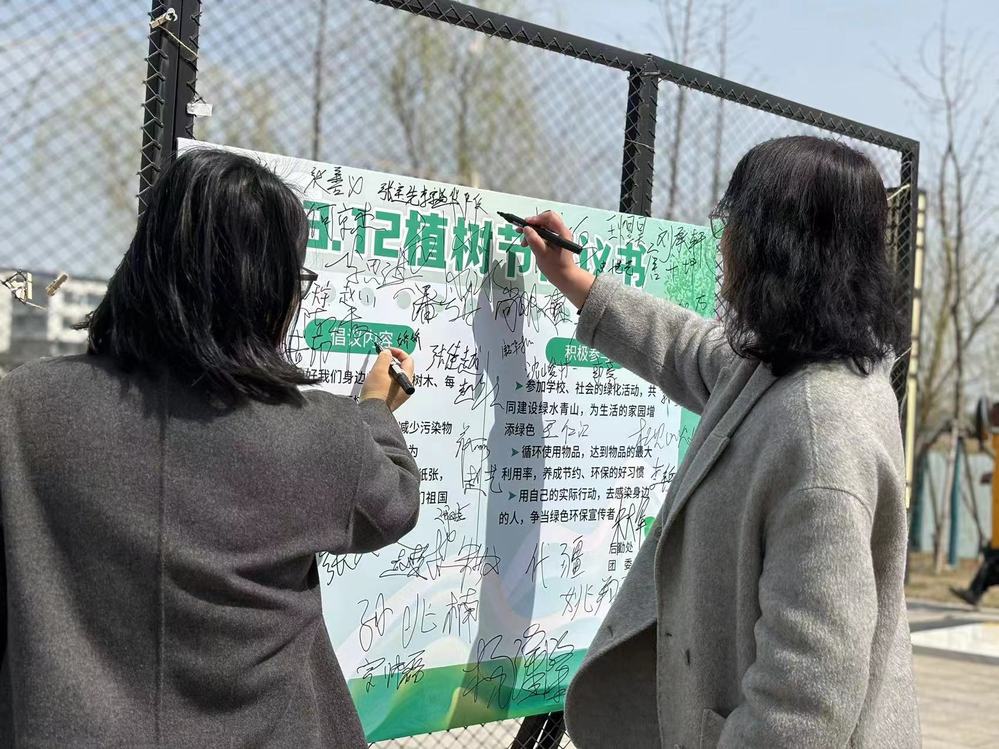 全体师生纷纷在植树节倡议书上签名,表达对环境保护的承诺和决心,共同努力为打造美丽的校园贡献力量。