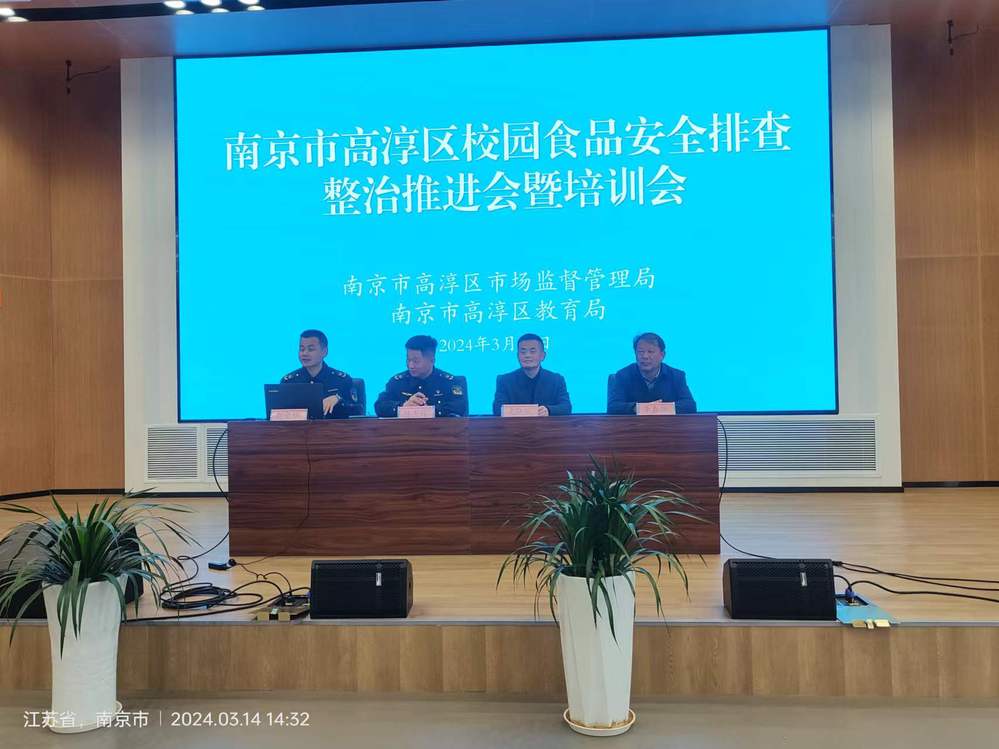 为贯彻《南京市校园食品安全排查专项行动》精神,进一步推进校园食品安全排查整治工作。高淳区市场监督局、教育局于2024年3月14日下午,于乐投线上平台(集团)官方网站乐学楼102联合召开高淳区校园食品安全排查整治行动推进会暨培训会。高淳区市场监督局党委委员副局长陈杰辉、高淳区教育局党委委员副局长史联盟出席会议,全区109个中小学、幼儿园食品安全负责人参加了会议。区市场监督局陈杰辉局长、区教育局史联盟局长对荣获2023年食品安全先进进行了表彰。