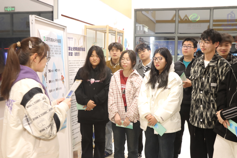 活动现场志愿者向同学们介绍我国水资源保护的法律法规、水利的历史与文化价值以及我校近年来水资源利用状况等,发放节水知识宣传单,呼吁大家增强节水意识,在日常生活中养成节水习惯,共同为“绿色校园”建设贡献一份力量。