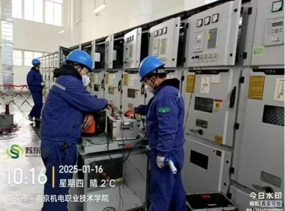 假期间工程组配合三电公司,对全校配电房进行了停电深度维护保养和预防性测试,仔细检查设备中的材料老化问题,通过试验检查隐藏的缺陷,及时更换故障零件,确保新学期的正常供电。