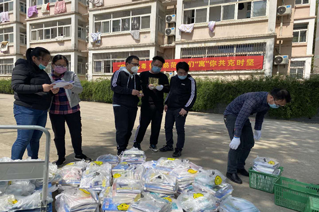 4月15日起,原本存放教材的教学楼一楼变成了教材配送第一站“发货区”,老师们负责以班级为单位进行教材的核对、打包、发货。负责分拣和发货的老师们,把每一位同学都视为VVVIP,定制的教材袋标签,多次核对学生信息、宿舍、教材。每一位同学的教材都用塑料袋进行单独包装,包装袋上的标签是老师们事先核对宿舍信息后手工填写的,每一份教材可都是独家定制版哦!