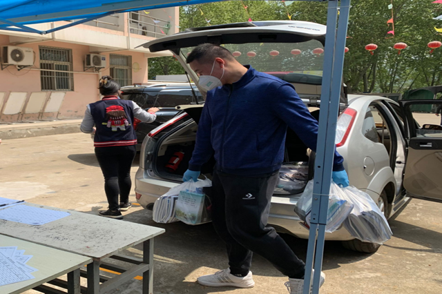 从教学楼到宿舍区,这条路每天都要走上好几遍,今天,这条路却格外“遥远”:解决31022本教材、33630练习本在校园内的“最后一公里”,老师们的私家车秒变“货拉拉”,李书贵老师、刘丽平老师主动腾空了自己私家车的后备箱,用于教材在校内的运送。杨晓飞老师、李宝华老师化身临时“货车司机”,来回运送教材,顺利完成了教材从存放区到宿舍区的“大挪移”。