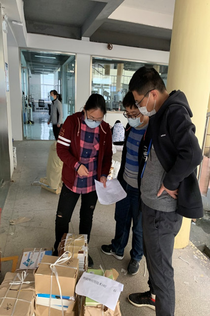老师们在搬运教材进宿舍