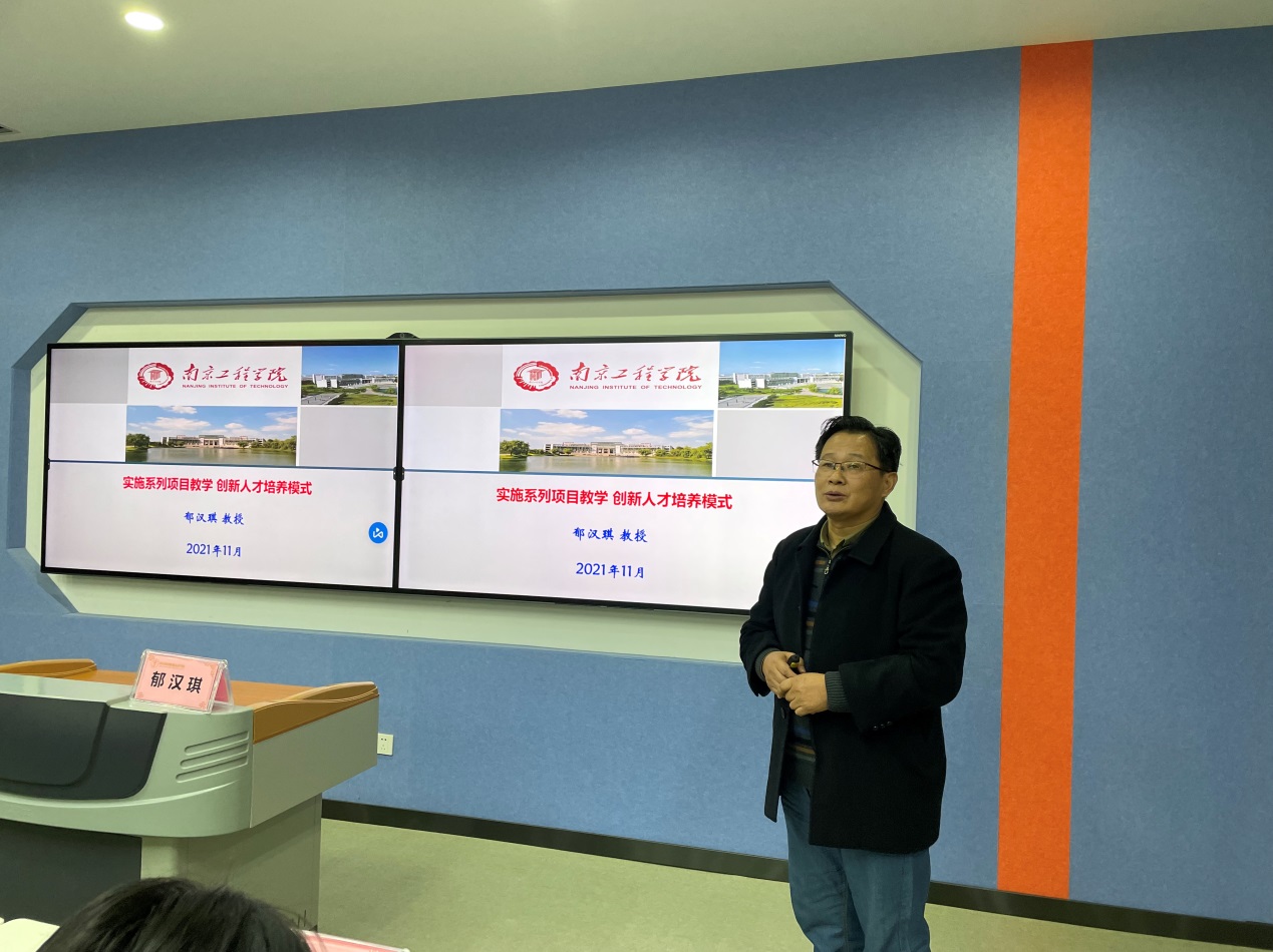 11月23日下午,教务处邀请南京工程学院郁汉琪教授来我校作报告,我校院长周庆礼、副院长刁爱军出席报告会,报告的主题为《实施系列项目教学 创新人才培养模式》,郁汉琪教授现任南京工程学院工业中心主任,兼苏鲁皖地区高等学校电子技术研究会副理事长,江苏省电工技术学会控制系统专委会副主任,南京电工技术学会PC专委会主任等职。