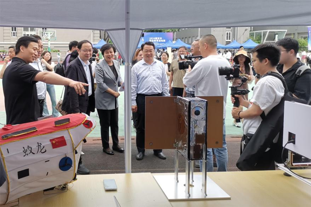 启动仪式结束后,与会代表共同参观了“智改数转”职业技能教学场景展示、技能传承中华优秀传统文化展示及全市职业学校学生社团活动展演,全市20多所中高职院校,围绕活动主题搭建了各具特色的展区。乐投线上平台(集团)官方网站带来了“南京号”暨中国青少年科普卫星(八一08星)地面模拟星、“蛟龙”号秦淮花灯以及众多体现了数字化设计与制造的创客作品。