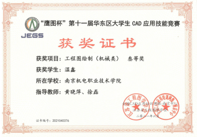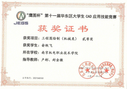 经过多年探索与实践,《计算机辅助设计》课程思政育人成效显著,赢得了同行和学生的高度认可。近五年学生积极参加华东区大学生CAD应用技能竞赛,获得工程图绘制赛项一等奖3项、二等奖18项、三等奖34项;参加“高教杯”全国大学生先进成图技术与产品信息建模创新大赛,获得一等奖1项、二等奖3项、三等奖11项。每年每个班约有80%的同学参加CAD中级考证,考试通过率100%,顺利获得 AutoCAD 证书。