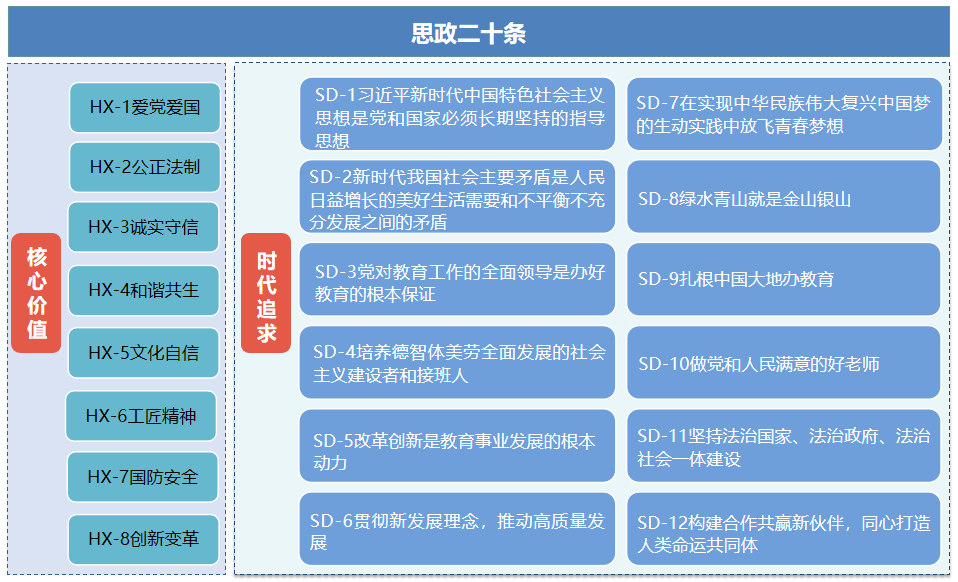 课程团队依据学院课程思政 “二十条”,紧密结合课程特点与学生学情,创新性构建了 “一主线、四主题、十元素” 的课程思政育人体系。以“怀匠心、精匠技、践匠行、做匠人” 为思政主线,串联起 “爱国情怀、工匠精神、职业素养、劳动精神” 四大主题。这四大主题对应十个思政元素,精准锚定了课程思政的育人目标。