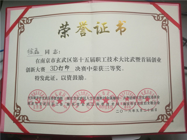 根据《关于举办2016年度南京市职工职业(行业)技能大赛的通知》要求,玄武区首届职工3D打印创意(玄东杯)大赛是2016年南京市职工职业(行业)技能大赛的二级竞赛。玄武区总工会,于2016年9月24日在玄东科技园,举办“玄武区首届职工3D打印创意大赛”的决赛。