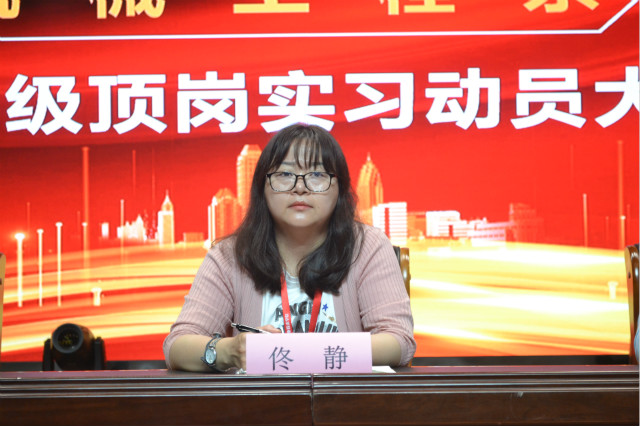 最后,佟静主任从政策和实践层面说明顶岗实习的重要性,向同学们介绍了顶岗实习的政策依据和现实意义。