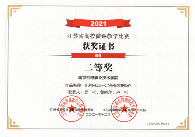 经学校遴选推荐、专家在线评审、专家复核评审和结果公示,该作品最终获得江苏省高校微课比赛的二等奖。