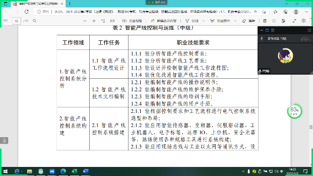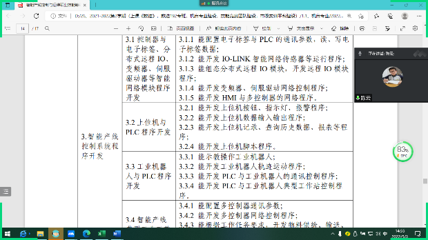 2022年5月3日下午,机械制造及自动化教研室延续4月19日的教研主题(人才培养与1+X职业技能等级标准相融合),讨论如何将智能产线控制与运维职业技能等级标准中级内容融入人才培养过程,本次会议由陆晨芳主持。