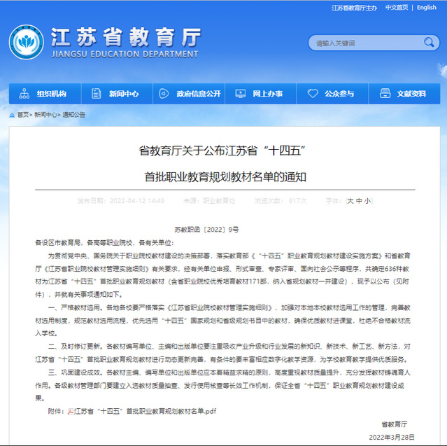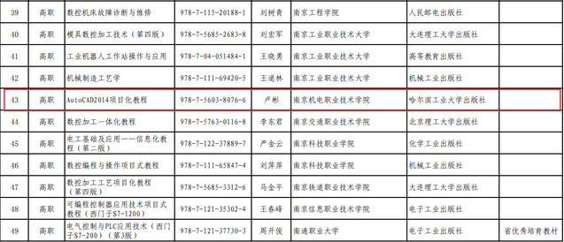 近日, 江苏省教育厅发布《关于公布江苏省“十四五”首批职业教育规划教材名单的通知》(苏教职函〔2022〕9号),公布共确定636种教材为江苏省“十四五”首批职业教育规划教材(含省职业院校优秀培育教材171部,纳入省规划教材一并建设)。我系《AutoCAD2014项目化教程》教材成功入选。